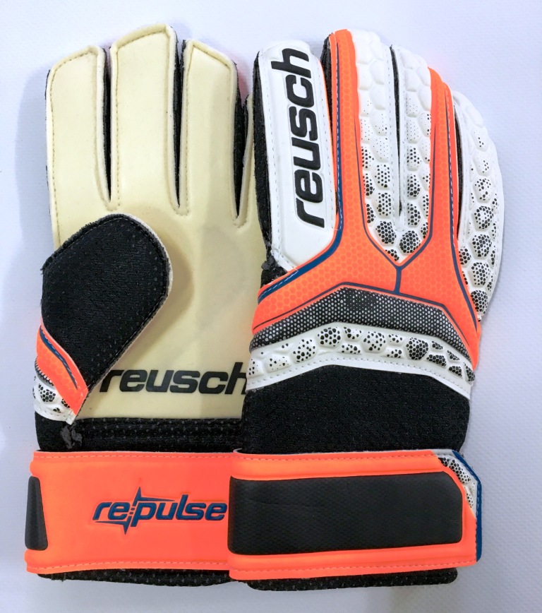 Nuovo guanto Reusch. Consigliato per gli allenamenti e per il gioco su campi morbidi. Buona resistenza e grip del palmo.